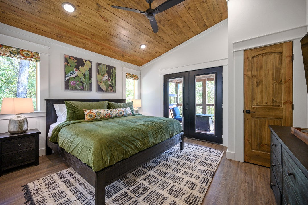 The cabin sleeps 12. One King bedroom on 1st with ensuite shower and bathtub. While the room is private, the bathroom is expected to be shared by all.