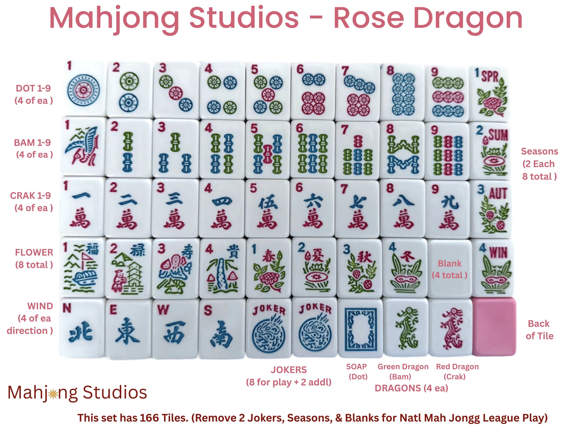 🀄 Mahjong Studios – Rose Dragon American Mahjong Tile Set (166 Tiles)