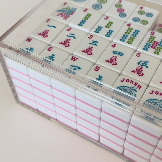 Each tile features clean, classic artwork inspired by vintage Mahjong sets — reimagined in a modern rose dragon palette. The bright pink tile back adds an elegant touch, making this set as beautiful to display as it is to play.