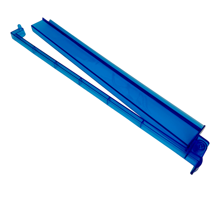 Includes ONE (Single) 18.5-inch rack with pusher in vibrant blue designed for smooth tile movement and eye-catching elegance. The crystal-clear construction ensures stability and effortless gameplay, while the modern colors add a pop of personality to your table.